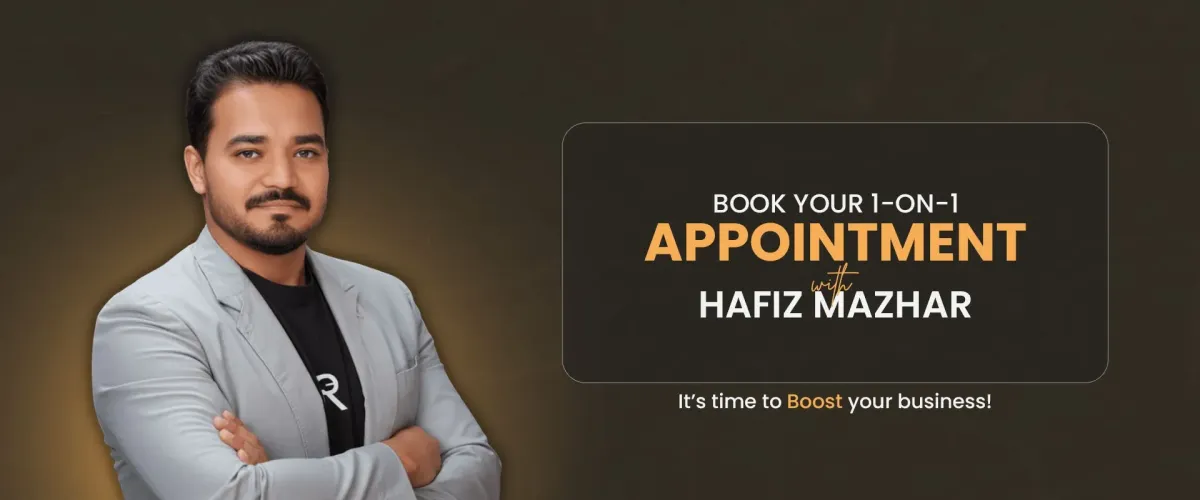 Suppose you’re stuck in your business or need direct guidance to move forward. In that case, this is your chance to get personalized one-on-one mentorship with Hafiz Mazhar, Pakistan’s leading E-Commerce and Digital Marketing Expert.